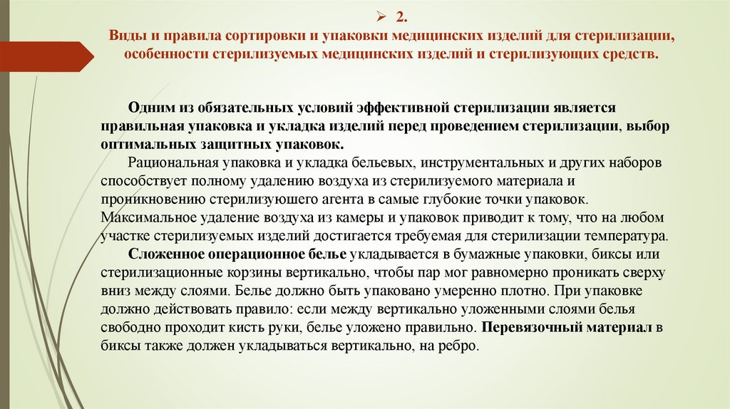 2. Виды и правила сортировки и упаковки медицинских изделий для