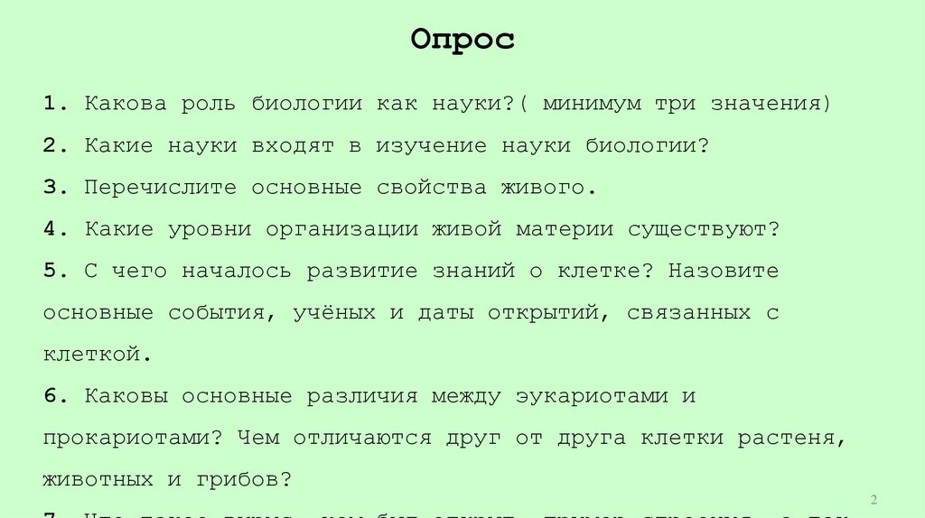 Опрос1. Какова роль биологии как науки?( минимум три значения)