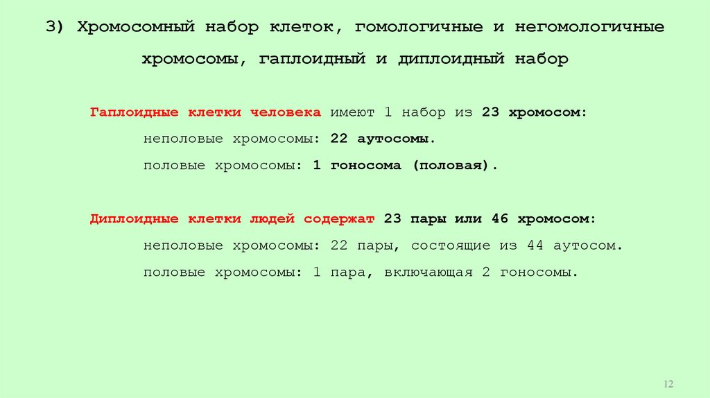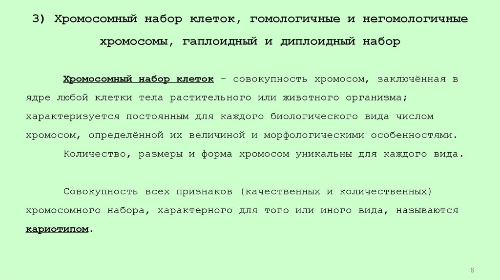 3. Хромосомный набор клеток, гомологичные и негомологичные