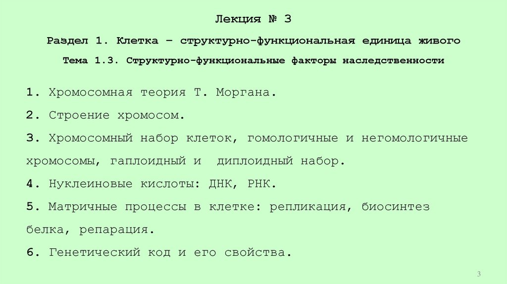Тема 1.3. Структурно-функциональные факторы наследственности