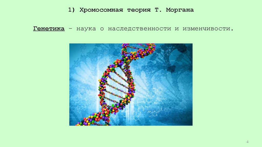 1) Хромосомная теория Т. МорганаГенетика – наука о наследственности и изменчивости.