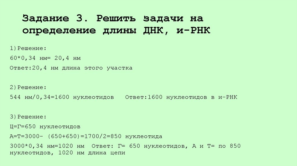 Задание 3. Решить задачи наопределение длины ДНК, и-РНК