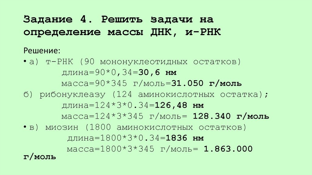 Задание 4. Решить задачи наопределение массы ДНК, и-РНК