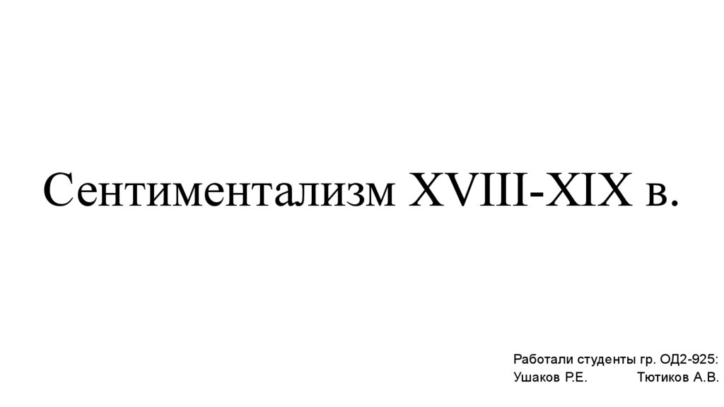 Сентиментализм XVIII-XIX в.Работали студенты гр. ОД2-925:
