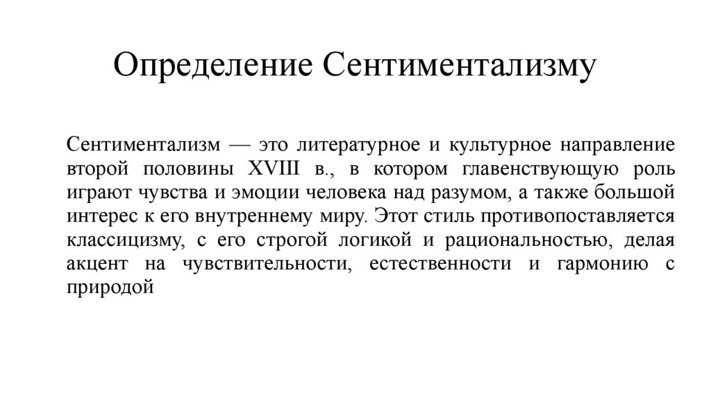 Определение СентиментализмуСентиментализм — это литературное и культурное направление