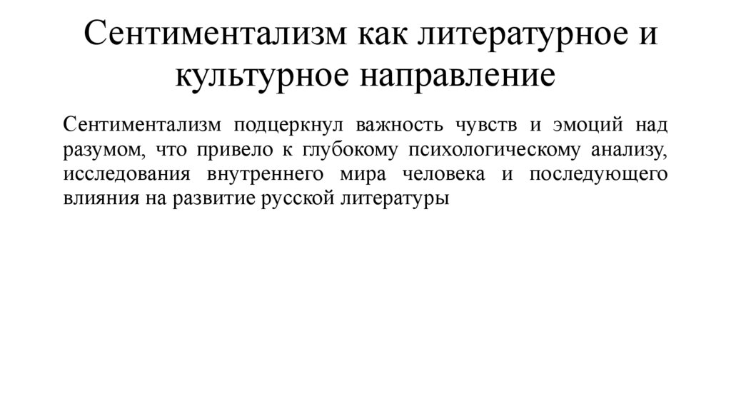 Сентиментализм подцеркнул важность чувств и эмоций над
