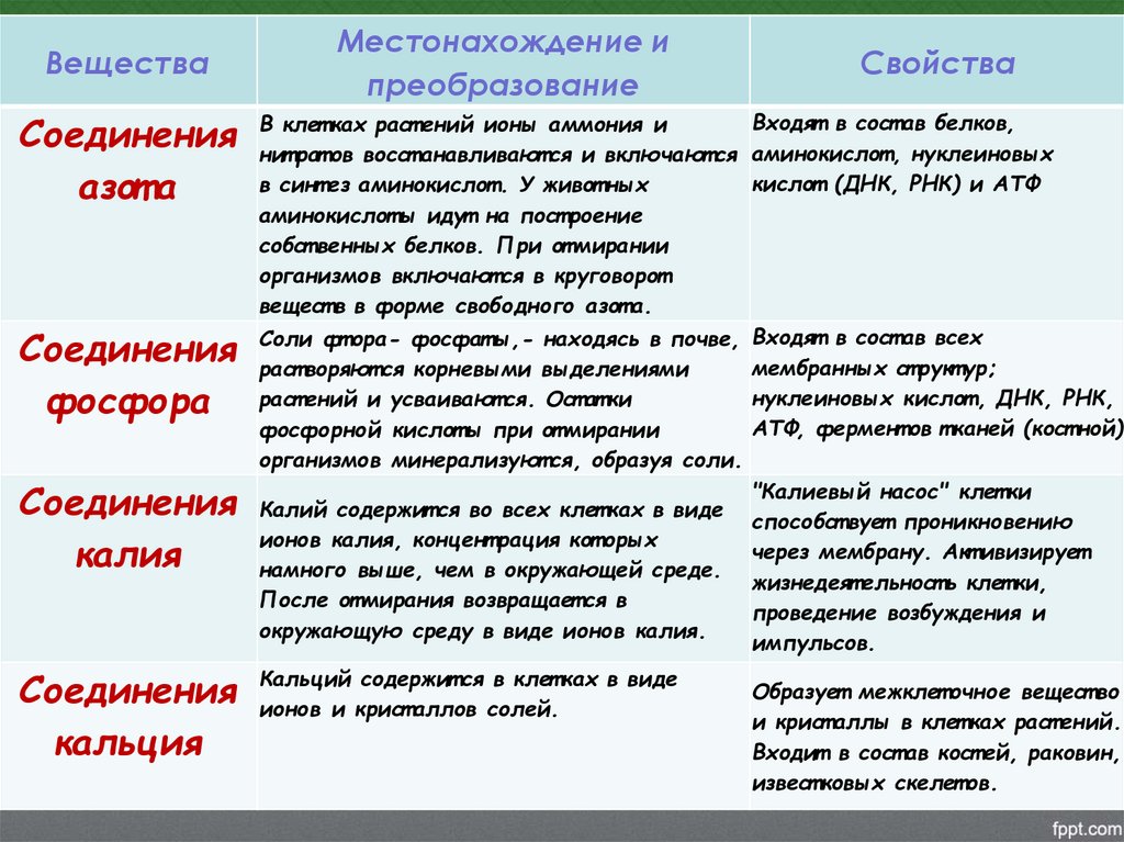 (N), сера (S), фосфор (F), нат рий(Na), калий (K),