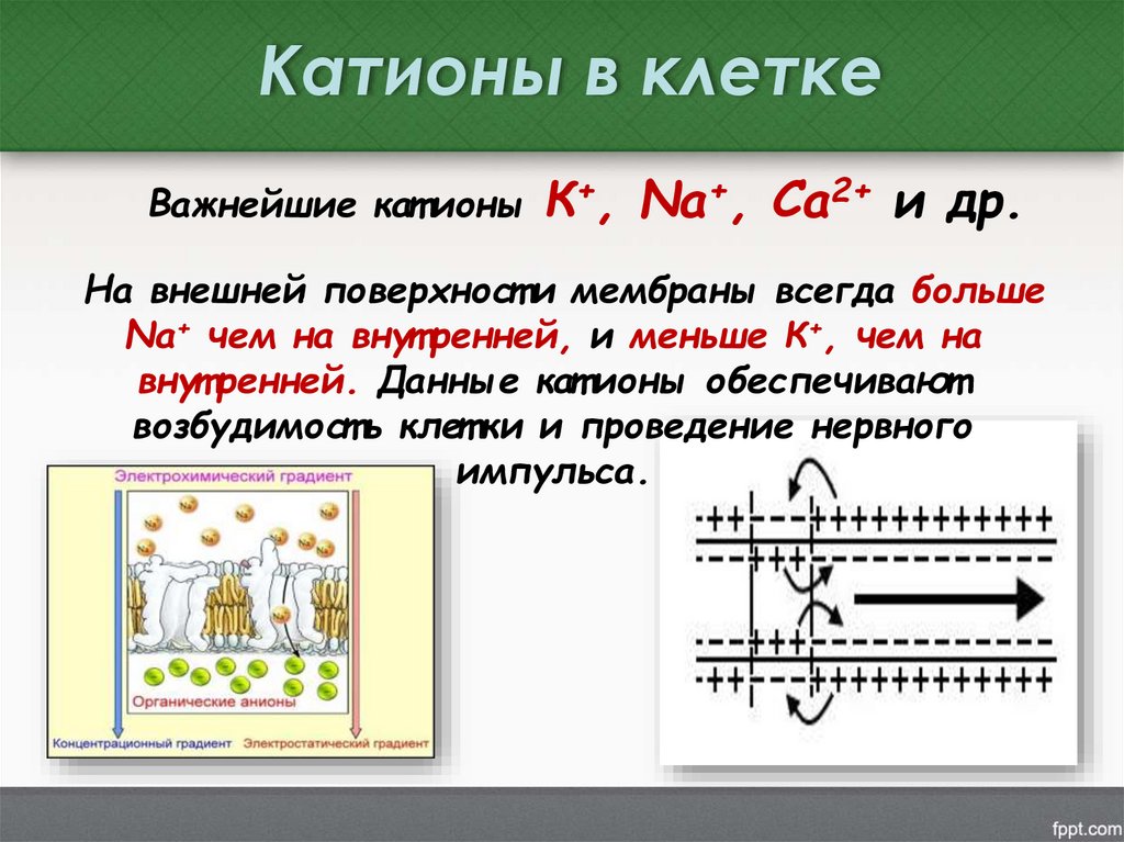 Катионы в клеткеВажнейшие кат ионы К+, Na+, Ca2+ и др.