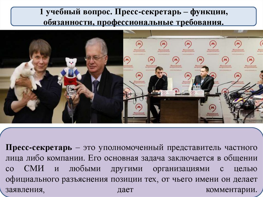 1 учебный вопрос. Пресс-секретарь – функции,обязанности, профессиональные требования.