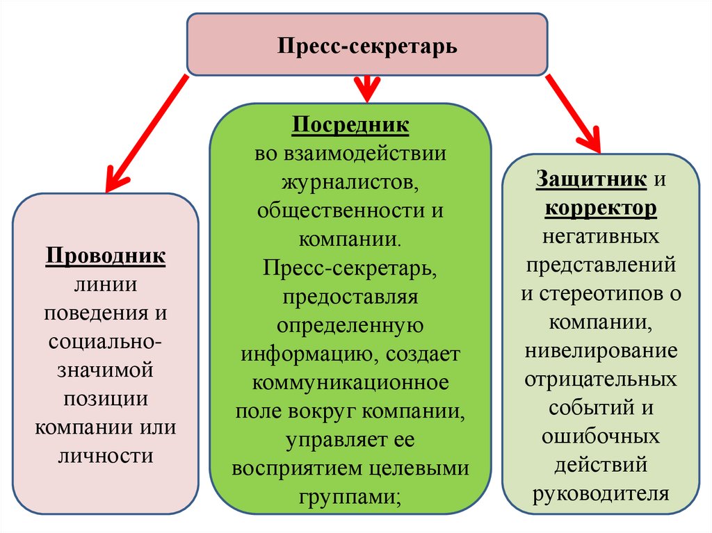 Главной функцией пресс-секретаря является еговзаимодействие со СМИ.