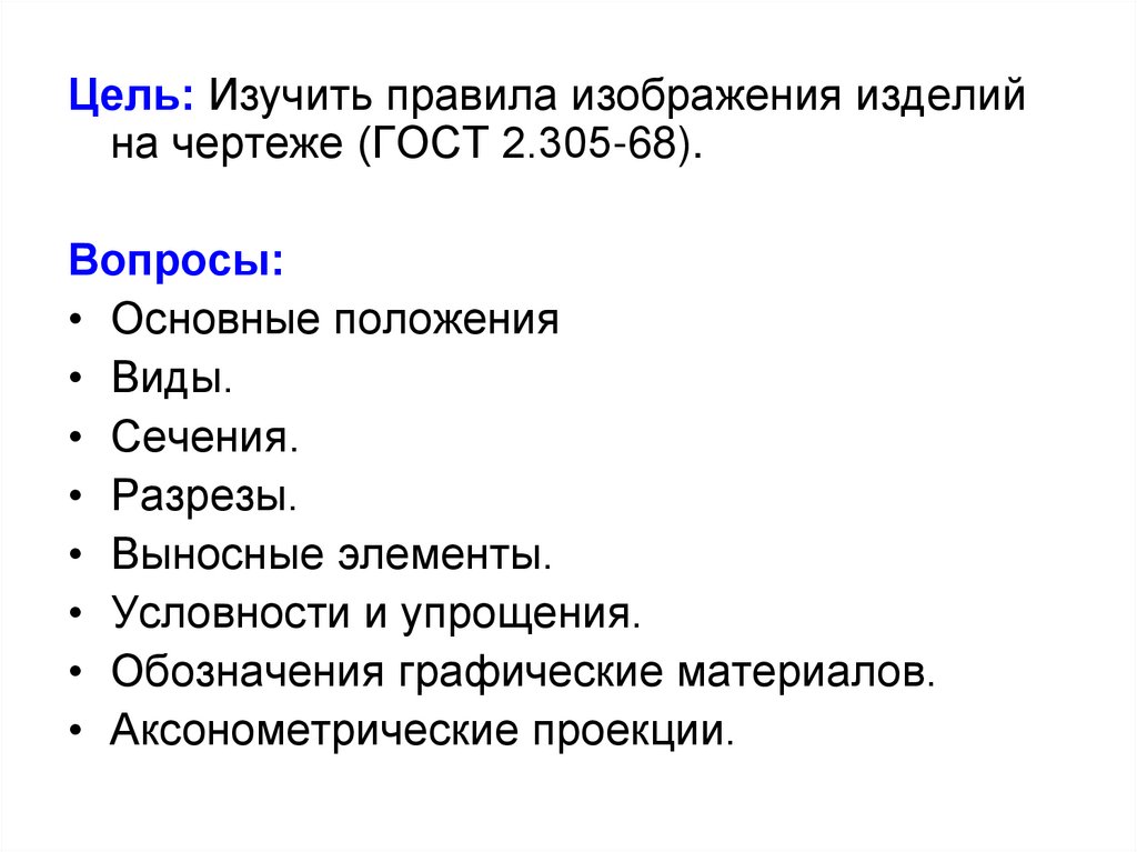 Цель: Изучить правила изображения изделийна чертеже (ГОСТ 2.305-68).