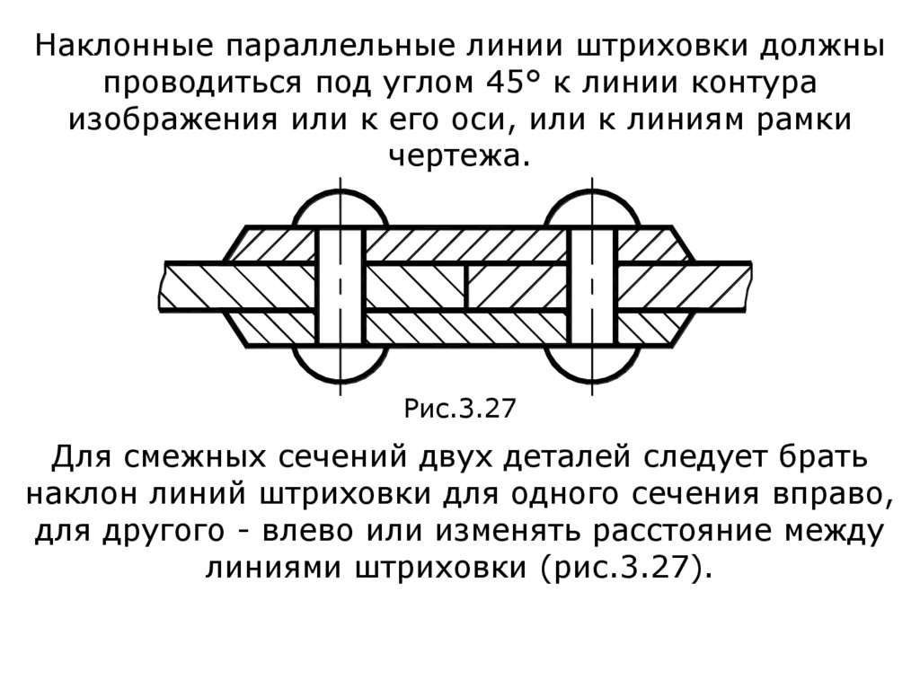 Расстояние между линиями штриховки зависит отплощади штриховки и должно быть от 1 до 10 мм.