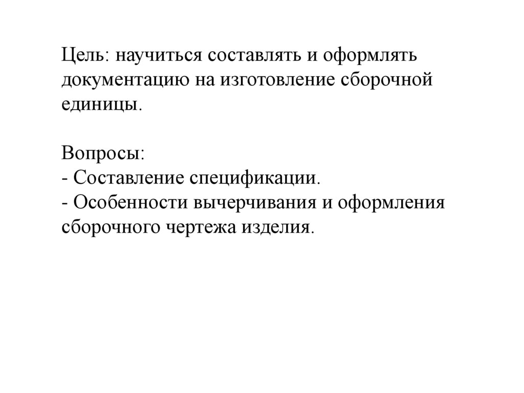 Цель: научиться составлять и оформлятьдокументацию на изготовление сборочной