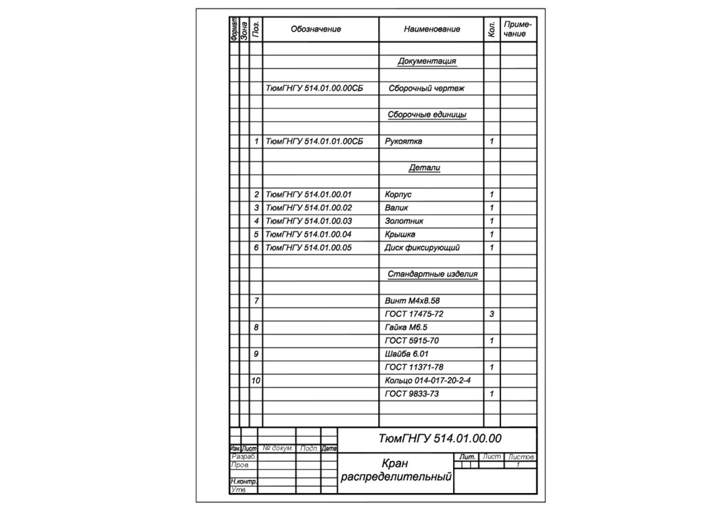 Сборочный чертеж изделия "Кран распределительный"7 2