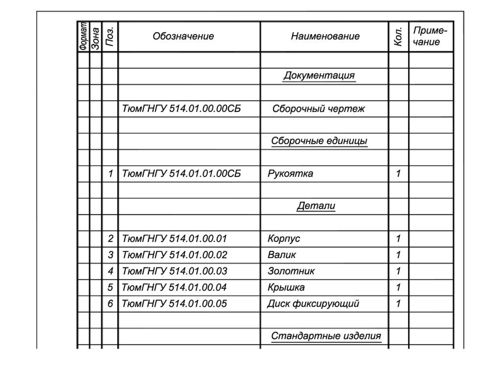 Составление спецификацииСогласно ГОСТ 2.102-68 для сборочной единицы за