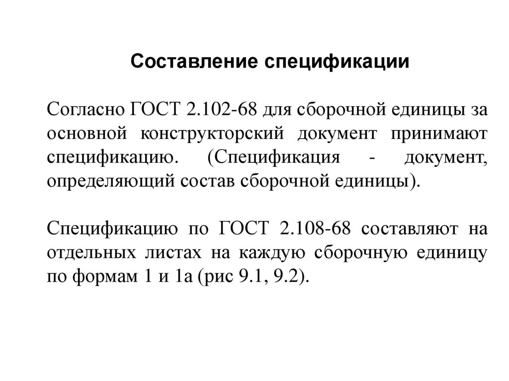 Спецификацию по ГОСТ 2.108-68 составляют на