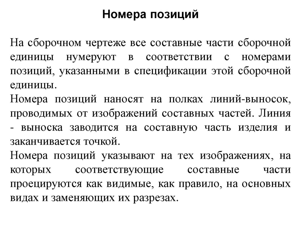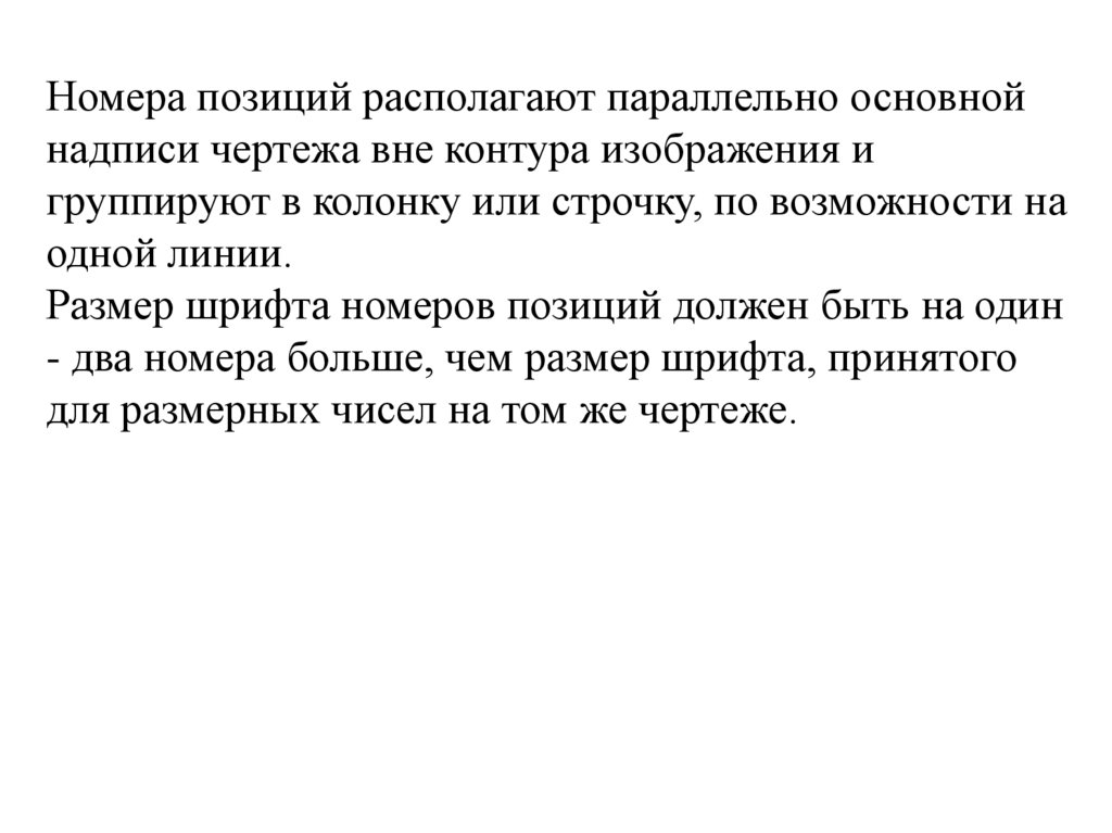 Номера позиций располагают параллельно основнойнадписи чертежа вне контура изображения и