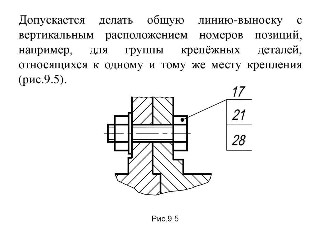 Допускается делать общую линию-выноску свертикальным расположением номеров позиций,
