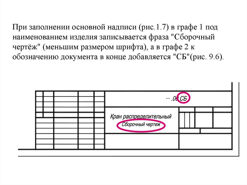 Особенности вычерчивания и оформлениясборочного чертежа изделия