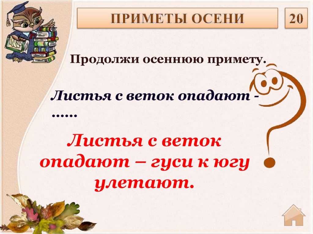 Продолжи осеннюю примету.Листья с веток опадают ……