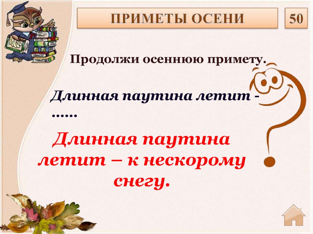 Продолжи осеннюю примету.Длинная паутина летит ……