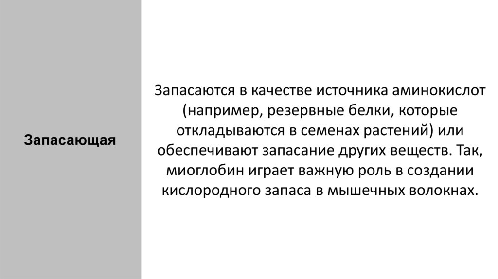 ЗапасающаяЗапасаются в качестве источника аминокислот