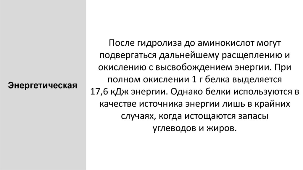 ЭнергетическаяПосле гидролиза до аминокислот могут