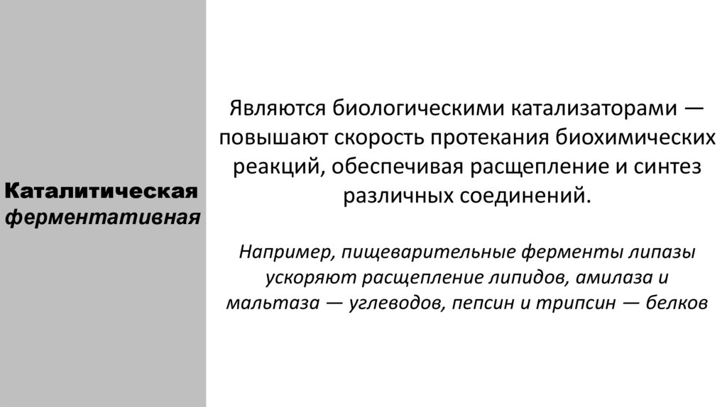 Являются биологическими катализаторами —повышают скорость протекания биохимических