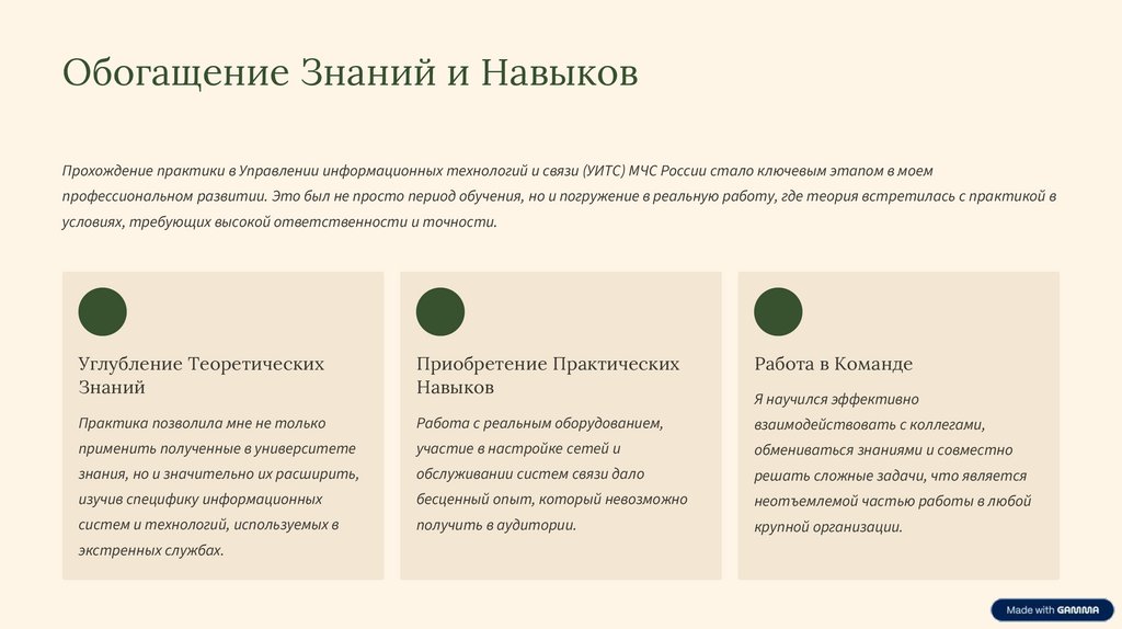 Обогащение Знаний и НавыковПрохождение практики в Управлении информационных технологий и связи (УИТС) МЧС России стало ключевым этапом в моем