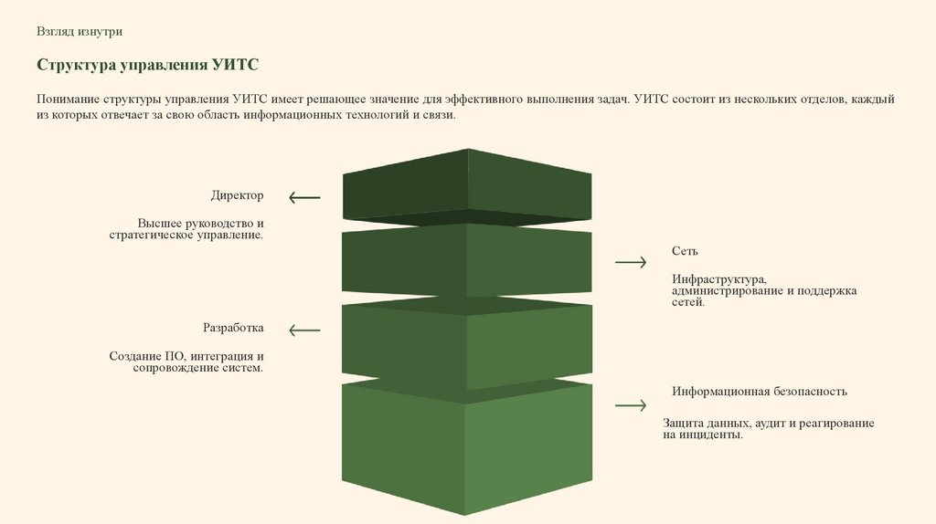 Понимание структуры управления УИТС имеет решающее значение для эффективного выполнения задач. УИТС состоит из нескольких отделов, каждый