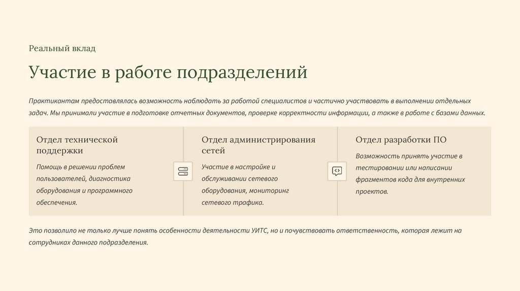 Это позволило не только лучше понять особенности деятельности УИТС, но и почувствовать ответственность, которая лежит на