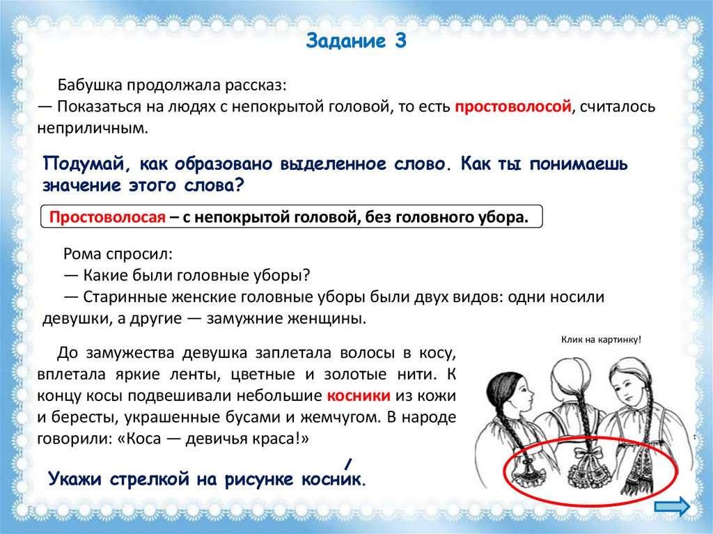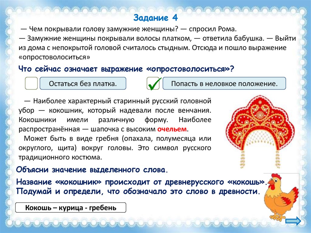 Задание 4— Чем покрывали голову замужние женщины? — спросил Рома.