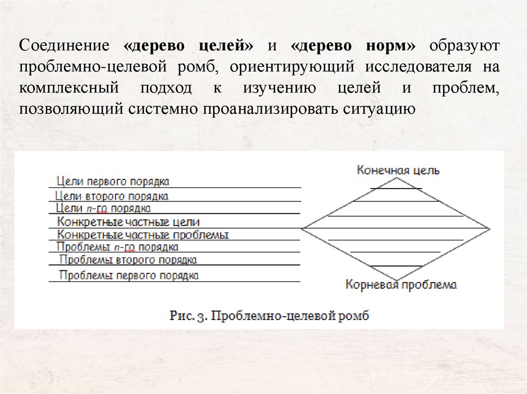 Соединение «дерево целей» и «дерево норм» образуютпроблемно-целевой ромб, ориентирующий исследователя на
