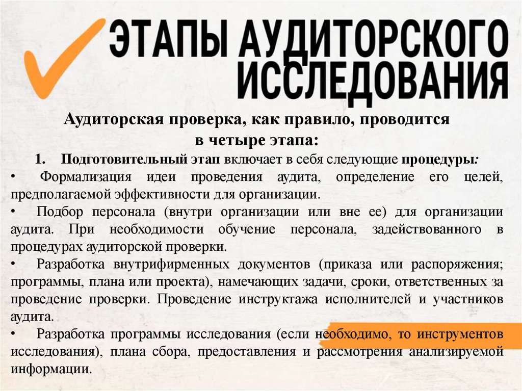 Аудиторская проверка, как правило, проводитсяв четыре этапа: