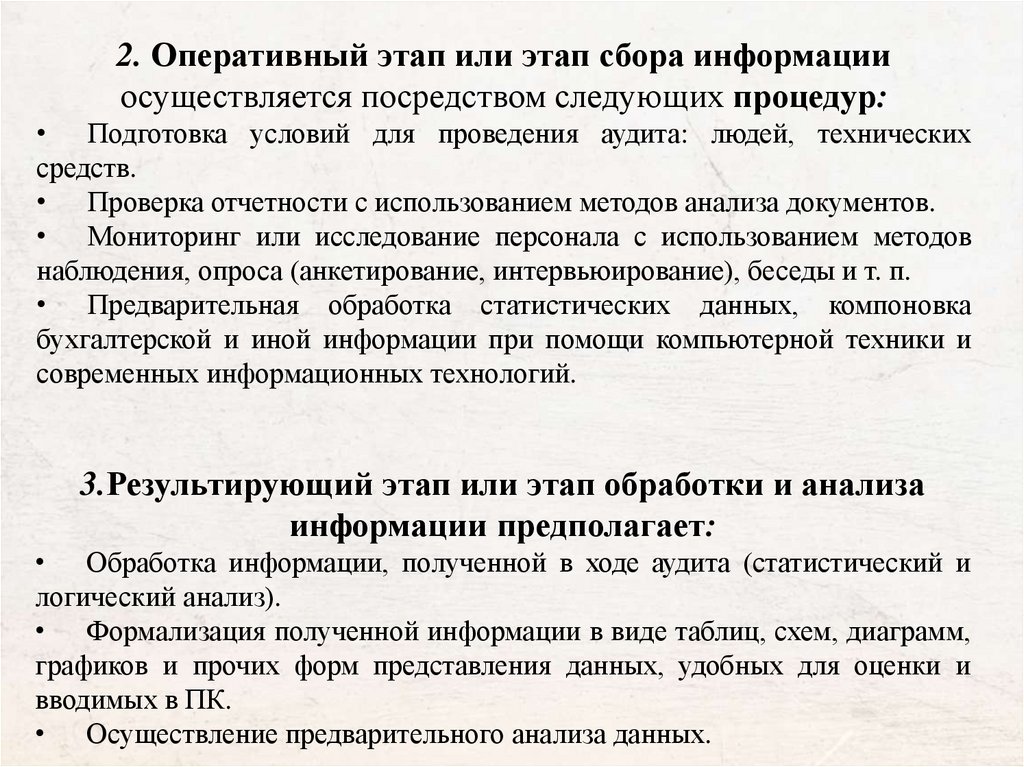 2. Оперативный этап или этап сбора информацииосуществляется посредством следующих процедур: