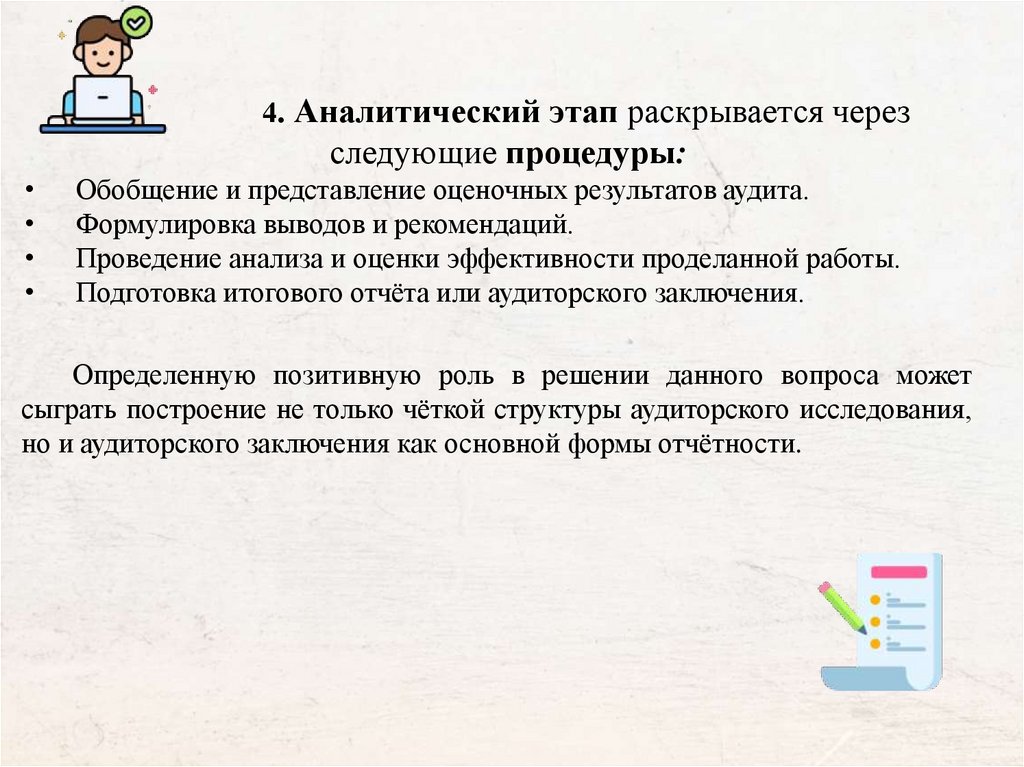 4. Аналитический этап раскрывается черезследующие процедуры: