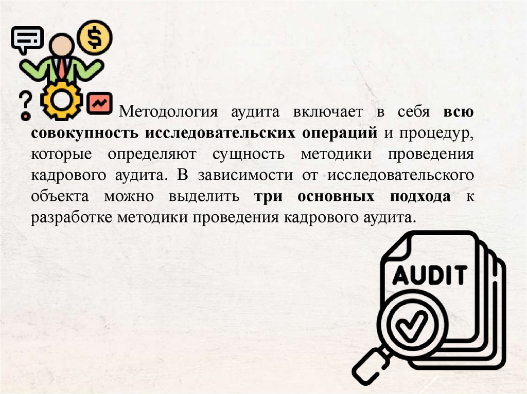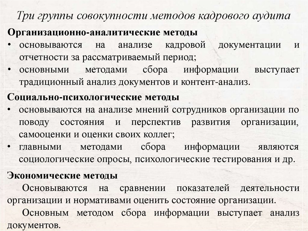 Три группы совокупности методов кадрового аудитаОрганизационно-аналитические методы