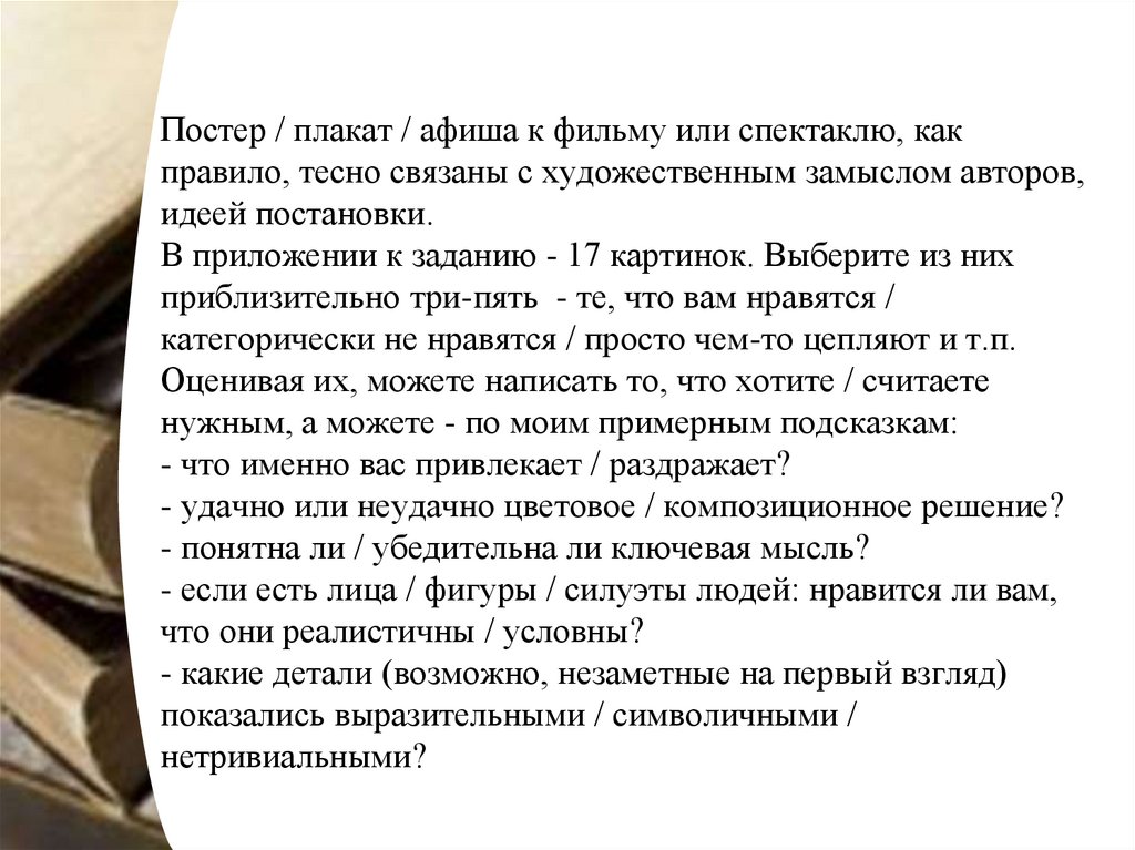 Постер / плакат / афиша к фильму или спектаклю, какправило, тесно связаны с художественным замыслом авторов,