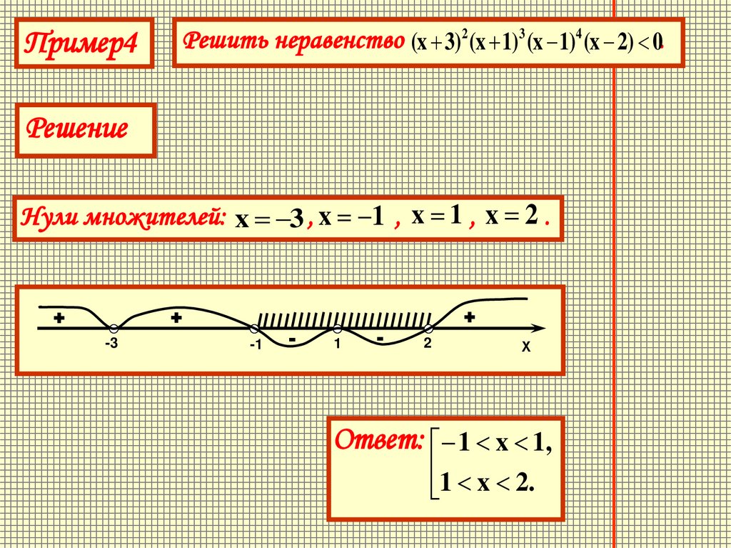 Нули множителей: x 3 , x 1 , x 1 , x 2 .