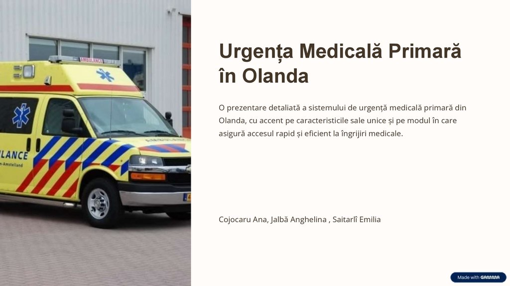 Introducere în Sistemul Olandez deUrgență Medicală Primară