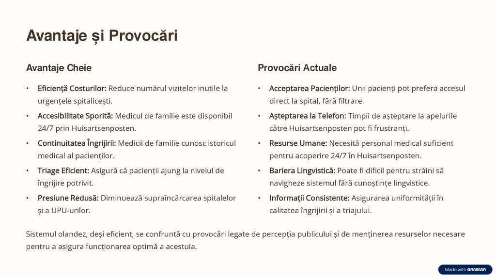 Caracteristici Unice ale Sistemului OlandezFiltru al Medicului de Familie