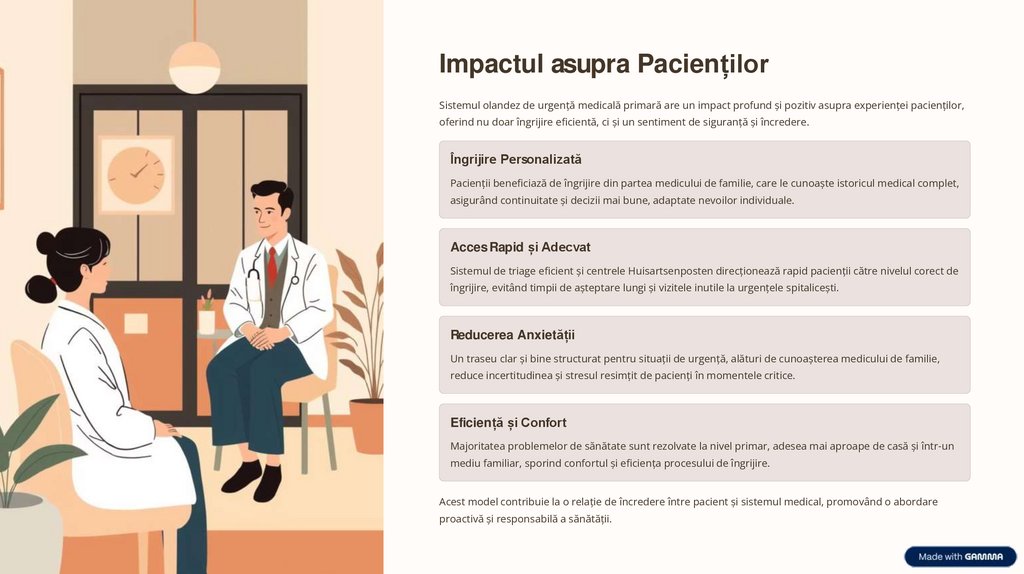 Impactul asupra PaciențilorSistemul olandez de urgență medicală primară are un impact profund și pozitiv asupra experienței pacienților,