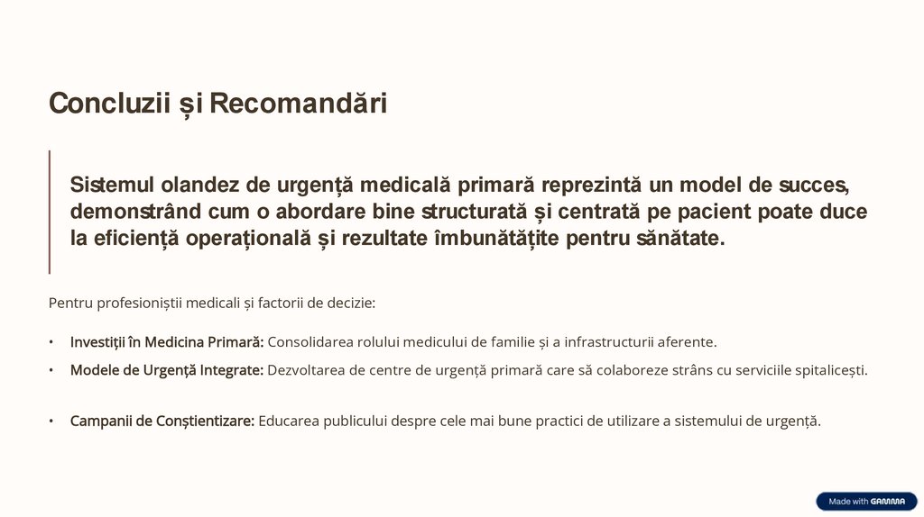 Concluzii și RecomandăriSistemul olandez de urgență medicală primară reprezintă un model de succes,