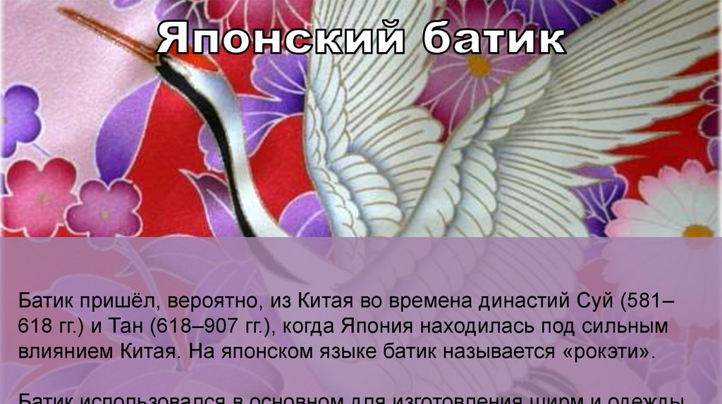 влиянием Китая. На японском языке батик называется «рокэти».