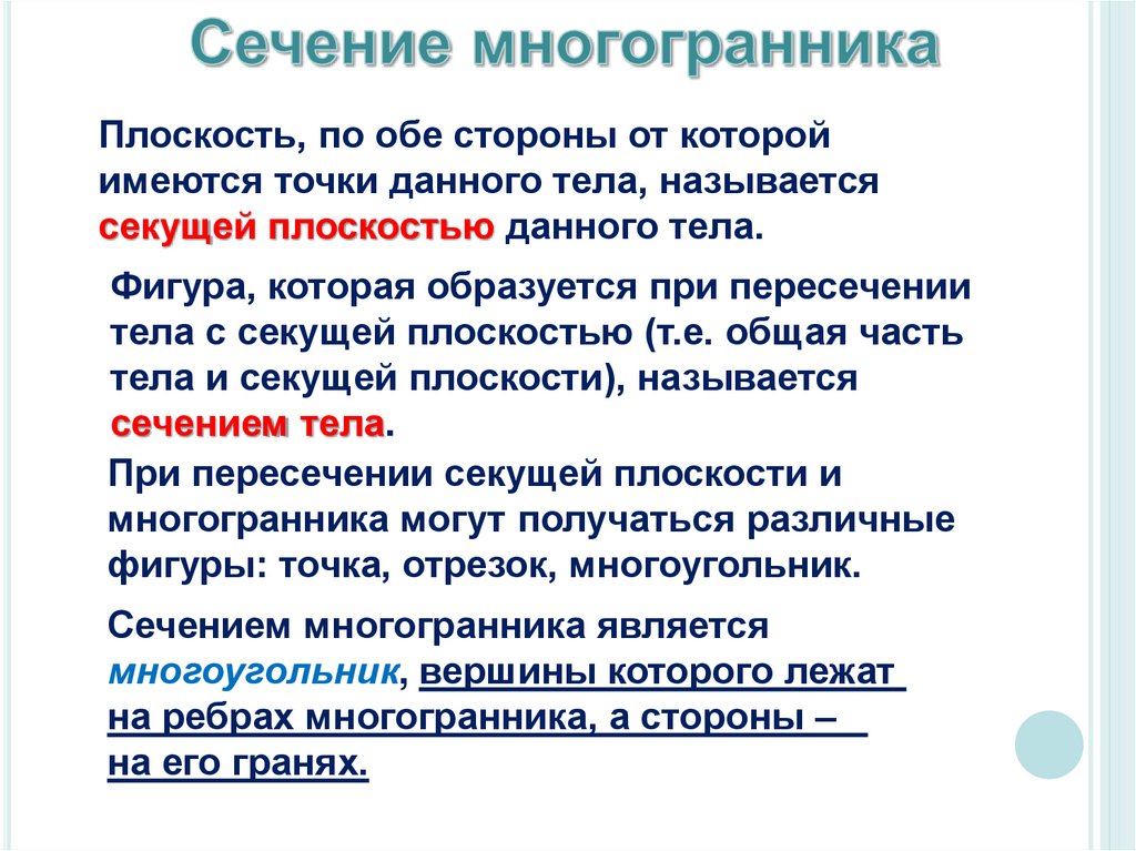 Плоскость, по обе стороны от которойимеются точки данного тела, называется