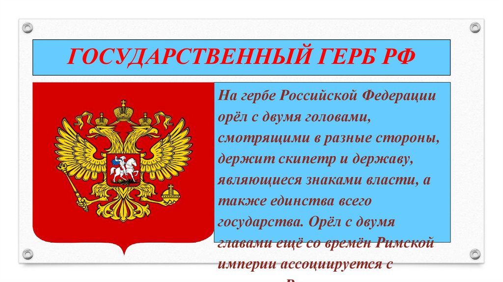 ГОСУДАРСТВЕННЫЙ ГЕРБ РФНа гербе Российской Федерации