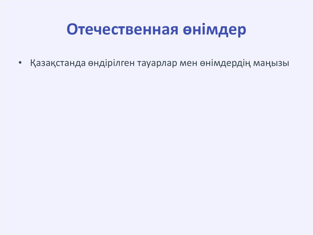 Отечественная өнімдер• Қазақстанда өндірілген тауарлар мен өнімдердің маңызы
