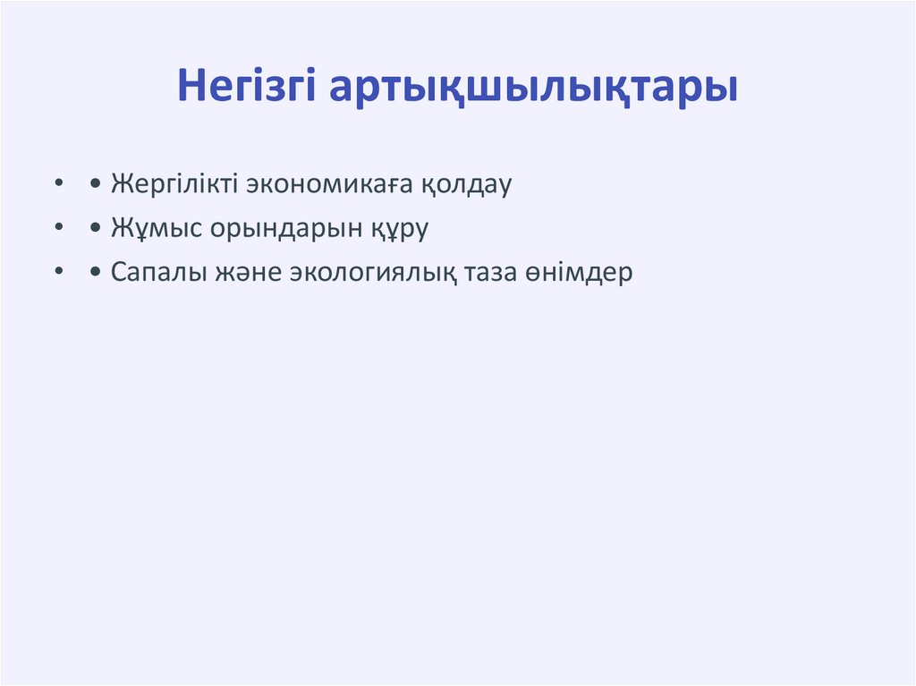 Негізгі артықшылықтары• • Жергілікті экономикаға қолдау