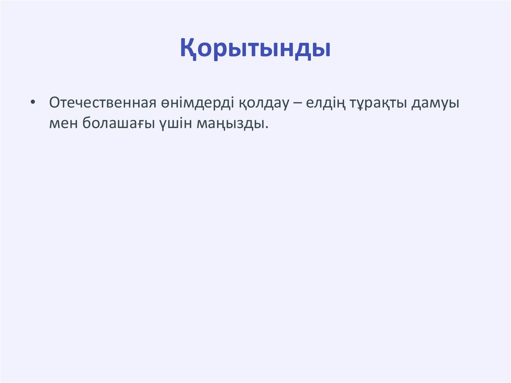Қорытынды• Отечественная өнімдерді қолдау – елдің тұрақты дамуы