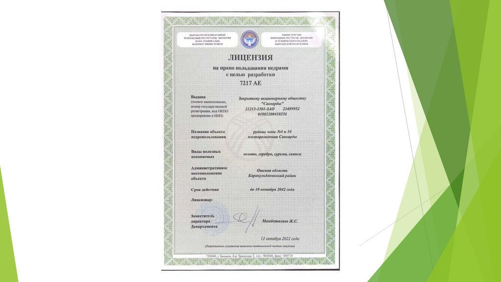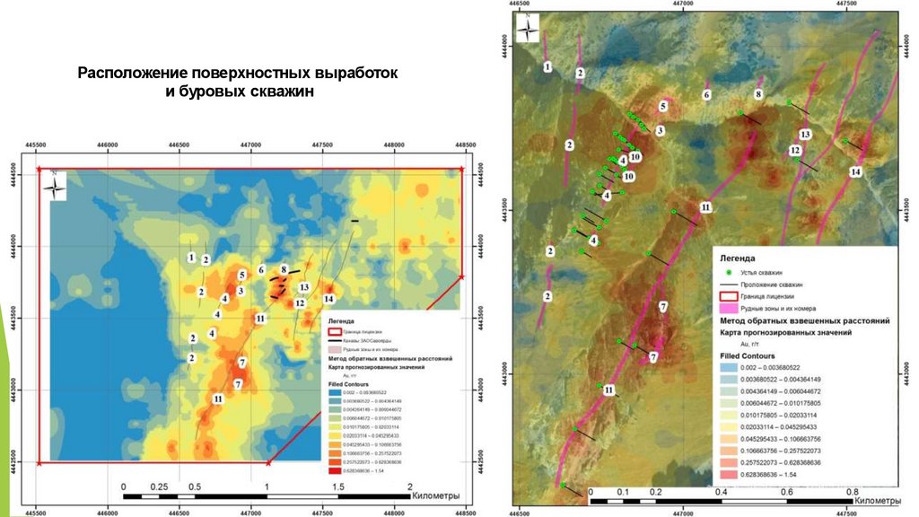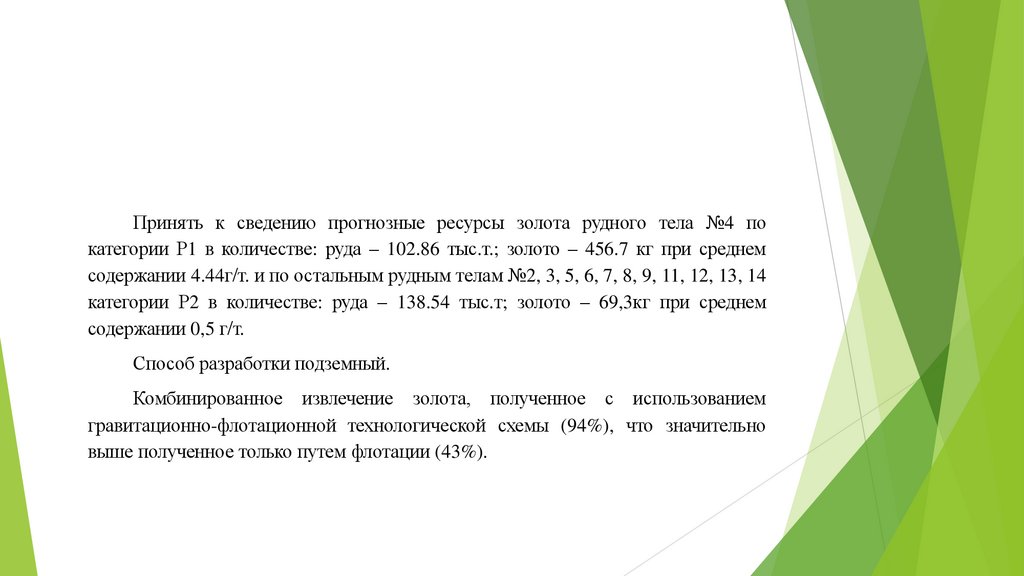 содержании 4.44г/т. и по остальным рудным телам №2, 3, 5, 6, 7, 8, 9, 11, 12, 13, 14